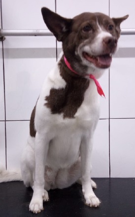 Presenta hace una semana una herida e una patita. Se oserva lesión alopécica descamativa eritematosa en corvejón izquierdo .Eritema con algo de descamación en oídos. Pequeños tumores mamarios en glándula mamaria posterior derecha. No está esterilizada.